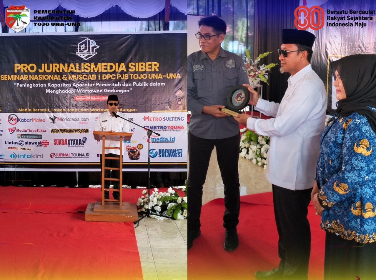 𝐓𝐨𝐮𝐧𝐚 – Bupati Tojo Una-Una, Ilham Lawidu menghadiri sekaligus membuka secara resmi Seminar Nasional Dewan Pimpinan Cabang PRO JURNALISMEDIA SIBER (PJs) dan Muscab DPC PJS Tojo Una Una yang di gelar di Marina Cottages Ampana, Rabu Pagi (01/10/25).