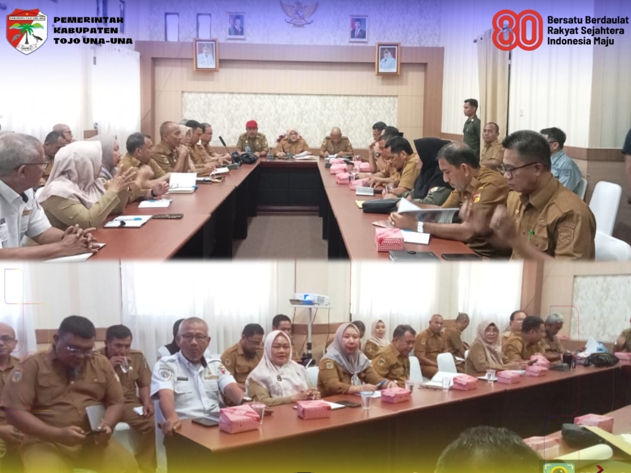 𝐓𝐨𝐮𝐧𝐚 – Pemerintah Kabupaten Tojo Una-Una, melalui Ibu Wakil Bupati Hj. Surya Lapasiri yang didampingi Sekretaris Daerah, Alfian Matajeng dan Kepala Badan Perencanaan Pembangunan, Riset dan Inovasi Daerah Kabupaten Tojo Una-Una, Muhamad Arsyad beserta seluruh Pimpinan Organisasi Perangkat Daerah menggelar Rapat Persiapan Kunjungan Kerja Gubernur dan Ibu Wakil Gubernur di ruang Rapat Eksekutif kantor Bupati Tojo Una-Una, Selasa 14 Oktober 2025